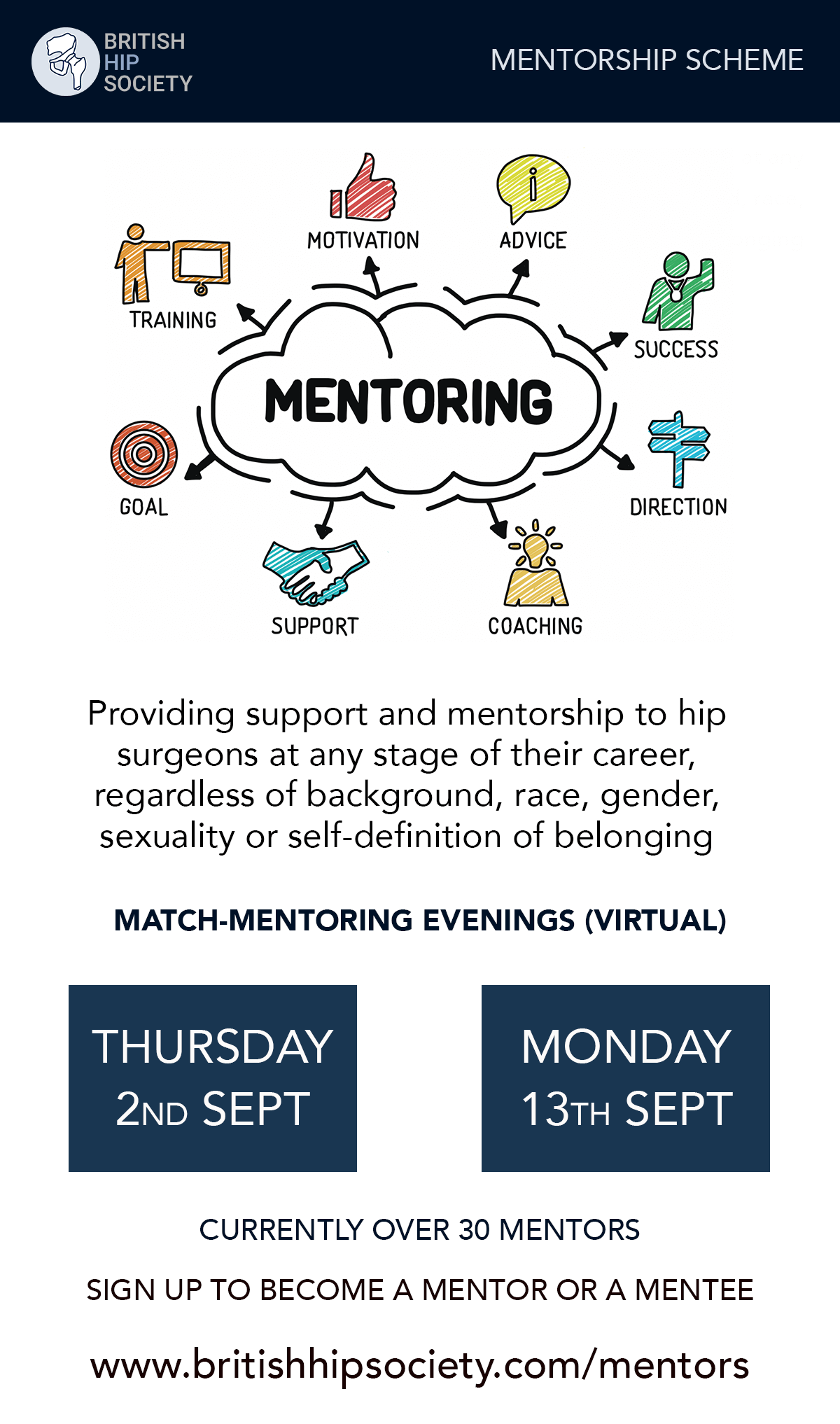 Anyone is welcome to join the scheme as a mentor, a mentee or both. You do not need to be a member of BHS to benefit from this scheme, we welcome anyone with an interest in Orthopaedics and Hip Surgery. We would very much appreciate you advertising this scheme amongst your colleagues, junior doctors and interested medical students. If you are keen to be involved please look at the website or contact us by email HERE for more information.
